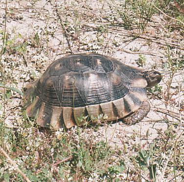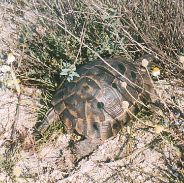 Three species of land tortoise (Testudinidae) occur in Greece; the spur-thighed tortoise Testudo graeca, Hermann's tortoise Testudo hermanni and the marginated tortoise Testudo marginata. I have worked mostly on T. hermanni at a single site, Alyki near Thessaloniki, but have also studied other populations of all three species in northern and eastern Greece. Many of these populations were first observed on student expeditions to Greece in 1980 and 1982. More detailed studies were made at some of these sites by another student expedition (by Karen Barnett, Lesley Dean, Anna Dubiel, Jeanette Lunt, Brian Moulden, Eric Steer and Jonathan Wright) in 1985, when I was working at the University of Thessaloniki. One particularly interesting site, Epanomi (on the opposite side of the Gulf of Thermaikos to Alyki) was introduced to me by Vassilis Goutner of the University of Thessaloniki on a bird watching trip. More populations have been studied by Ronald Willemsen, from Doetinchem in the Netherlands, who has worked on Greek tortoises since 1975. Ronald's sites are mostly in southern, central and western Greece so our studies are largely complementary. Ronald's particular interests have been variation in T. hermanni, and the ecology of T. marginata which is a relatively rare species endemic to Greece (Willemsen, 1991; Bringsøe, Buskirk & Willemsen, 2001).