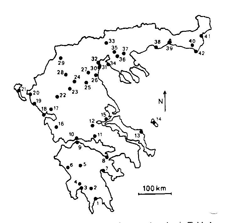 42 sites in Greece studied by Ronald Willemsen, myself and others from 1975-1986