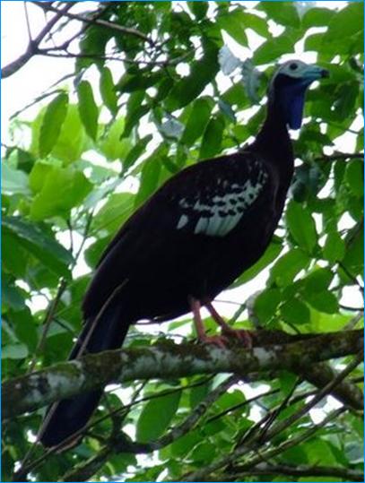 The Trinidad Piping-guan Pipile pipile, also known locally as the Pawi, is Trinidad’s only endemic bird. It is a large, glossy black, turkey-like bird with white wing coverts, a white crest, red legs and a blue cere and dewlap.
